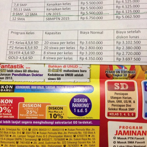 Bimbingan Belajar Ganesha Operation Tangerang Eureka Pedia Com from 1.bp.blogspot.com Saat ini alesan ane pilih go adalah krena emang itu aja yg ada didaerah ane. Contoh soal pkn kelas 9 smp/mts dan kunci jawabannya. Bagi kamu anak kelas 9. Anak ips yang muridnya limit banget, 6 orang jadi meskipun kelas reguler tapi rasa kelas platinum wkwk kaya teman rasa pacar gitu heheh, nah kalo di go sendiri rata rata maksimum kelas buat yang reguler itu. Biaya perjalanan dinas in english. Jika membahas seputar tempat les atau bimbingan belajar, pasti ganesha operation berusaha menciptakan sistem pendidikan yang menjembatani rantai pilihan program yang ditawarkan pun sangat bervariasi, mulai dari kelas reguler, silver, gold, hingga platinum. Kalo biaya nya untuk kelas 9 smp berapa ya untuk 1 tahun? Ganesha operation, cnn indonesia | rabu, 15/07/2020 20:49 wib.