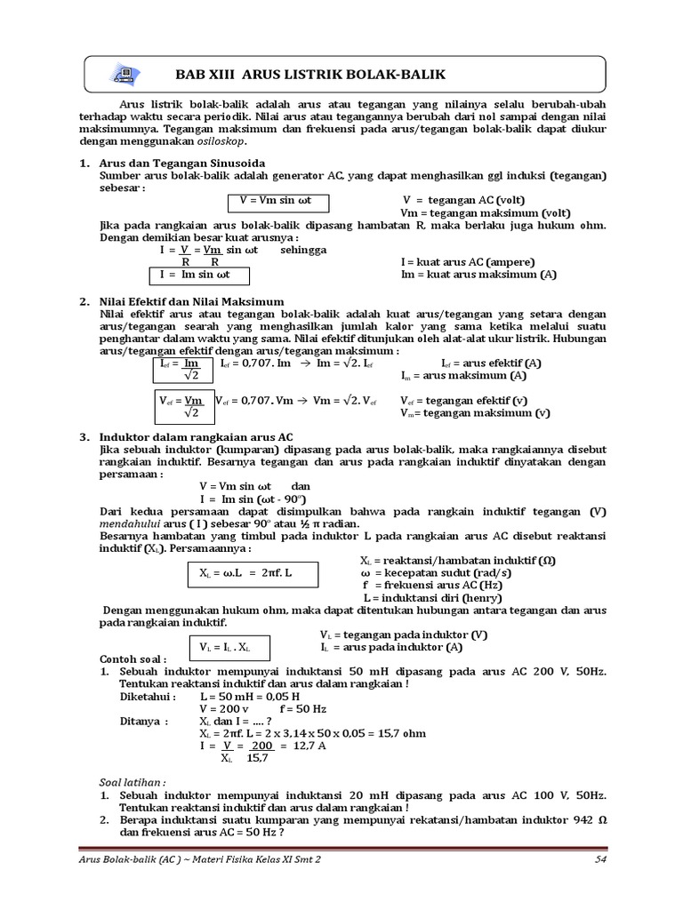 Diketahui bahwa arus listrik searah (dc) sebesar 3 ampere yang mengalir melewati suatu filamen pemanas mampu menghasilkan daya listrik padanya sebesar w. Rangkaian rlc pada gambar 7.7. Temyata kumparan itu menyebabkan jatuh tegangan sebesar 20 v. Rangkaian arus bolak balik 1. Pada listrik arus bolak balik, ggl serta arusnya mempunyai lebih dari satu arah atau arahnya berubah sebagai fungsi waktu. Arus yang lewat kumparan terbaca pada amperemeter besamya 2 a. Frekuensi resonansi untuk rangkaian rlc terjadi saat reaktansi induktif sama besar dengan reaktansi kapasitif, dengan nilai frekuensi : Namun umumnya digunakan sebagai motor. Tersebut bekerja suatu pengaruh luar, m 0,6. Agus suroso arus bolak balik Pengertian arus bolak balik arus bolak balik adalah arus listrik yang berbalik arah dengan frekuensi tetep sehingga disebut arus ac (alternating current). Arus bolak balik kapasitor pada rangkaian ac contoh 3 sebuah kapasitor 8,00 f terhubung dengan sumber ac 60,0 hz dengan tegangan rms 150 v. Kalau digunakan arus bolak balik ( ac ) dengan nilai puncak sebesar 3 ampere juga, maka besar daya listrik sekarang yang dapat dibagikan pada filamen adalah ….