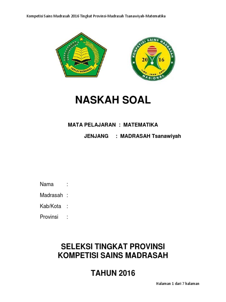 Soal ksm matematika ma 2019 tingkat kabupaten kota no. Juknis ksm 2019, yang sudah diterbitkan menjadi pedoman bagi panitia lomba ksm di berbagai tingkat mulai dari tingkat madrasah,, kecamatan, kabupaten pada postingan kali ini akan fokus pada contoh soal ksm matematika mts tahun 2019, jika bapak ibu ingin soal yang lain bisa bapak ibu cek dilink. Kegiatan ini dilaksanakan sebagai ajang unjuk kemampuan siswa di bidang akademik yang rutin dilaksanakan kementerian agama setahun sekali. Pelaksanaan kompetisi sains madrasah tingkat kabupaten/kota baru saja selesai dilaksanakan serentak di seluruh indonesia. Soal ksm matematika tingkat pada seleksi kabupaten/kota ini terdiri dari 25 soal pilihan ganda, waktu yang disediakan untuk menyelesaikan seluruh soal pada naskah ini 90 menit.