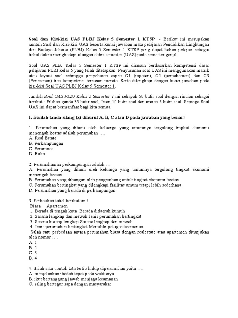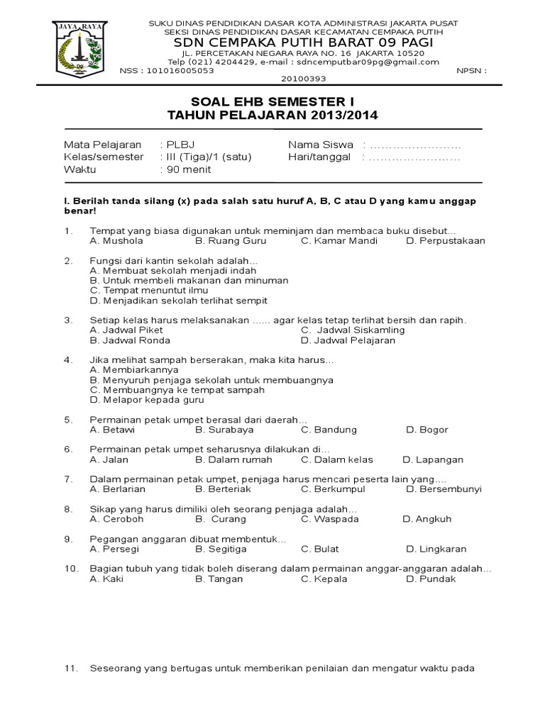 Soal Uts Plbj Kelas I from imgv2-2-f.scribdassets.com Soal uts plbj kelas 6 semester 1 ktsp kumpulan soal ulangan. Soal kali ini berjumlah 30 nomor yang harus dijawab adik adik sekalian admin sediakan kunji jawabnnya. Multiplication and division word problems. Soal ujian sekolah plbj kelas 6 sd tahun 2018 terbaru coretan guru from 2.bp.blogspot.com dalam menghadapi uas/pas semester 1 (ganjil) untuk kelas 8 (viii) smp/mts sangat perlu bagi siswa untuk mempersiapkan diri dalam menghadapi ujian tersebut. Soal ulangan k13 kelas 3 tema 4 kewajiban dan hakku. Arab sdit mi kelas 6 semester 2 genap untuk berlatih ulangan uts genap b. Silahkan di share atau copy soal uas plbj atau pendidikan lingkungan budaya jakarta kelas 6 semester 2 yang dapat kalian pelajari guna persiapan dalam menghadapi ulangan akhir semester genap yang sebentar lagi akan tiba. Soal uts ipa kelas 6 semester 2pdf.